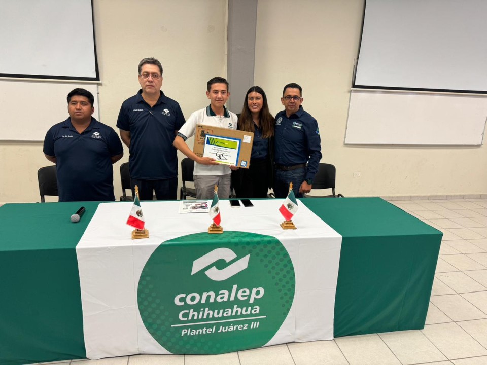 El viernes 24 de mayo reconocimos al alumno Pedro Mota Cardoso con una laptop y un reconocimiento en presencia de sus compañeros del CONALEP III en Ciudad Juárez en el aula audiovisual de la institución, al evento acudieron el director de la escuela, profesores, así como equipo de operaciones y Marketing de TotalGas® para realizar la entrega.