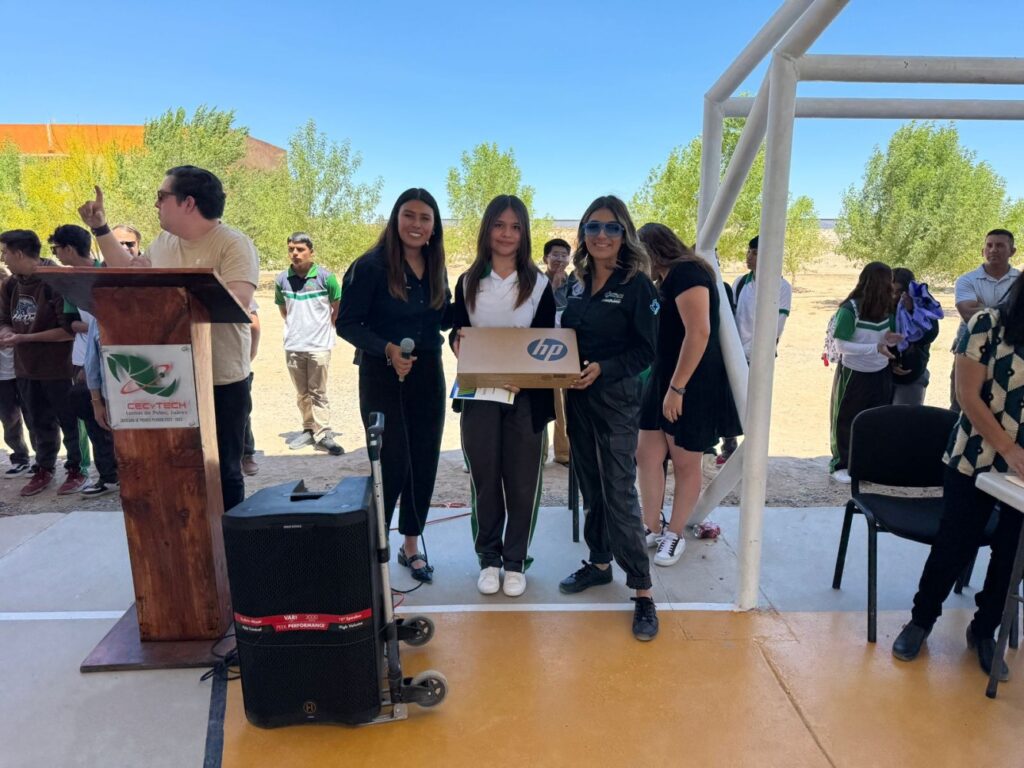 Mientras que este lunes 27 de mayo realizamos una segunda entrega en el plantel CECyTECH 9 ubicado en Lomas de Poleo, en las afueras de Ciudad Juárez, a la alumna Ingrid Pérez, quien cuenta con un gran promedio y aprovechamiento escolar. La joven agradeció a la empresa por fijarse en ella y apoyar a los estudiantes, de igual manera extendió el agradecimiento a sus padres por el apoyo en su educación.